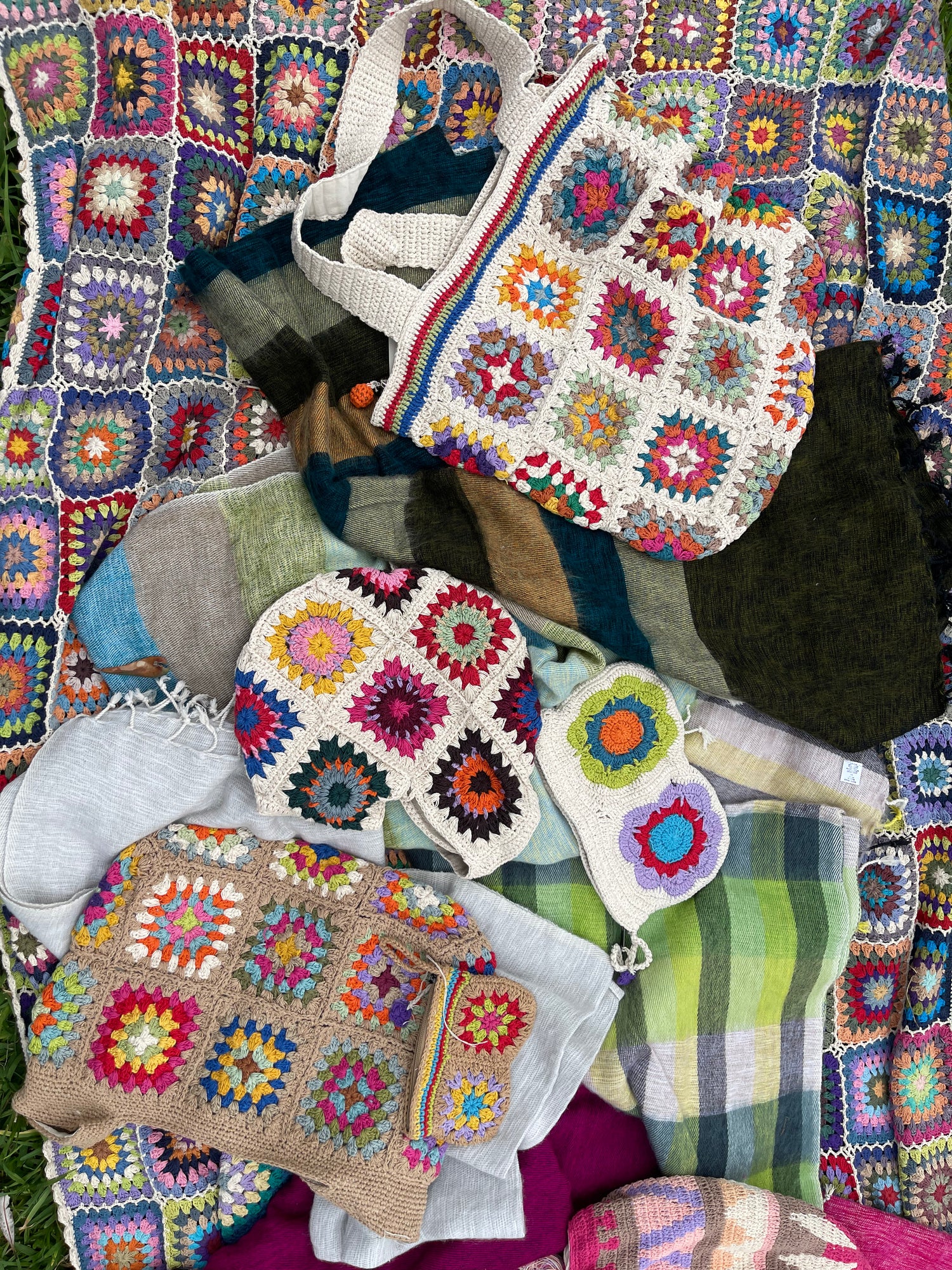 Discover crochet bags skillfully made by Nepalese women artisans, supporting economic independence and preserving artistic traditions. Dive into our collection of recycled sari bags, where vibrant textiles are transformed into unique, colorful treasures with distinct patterns.