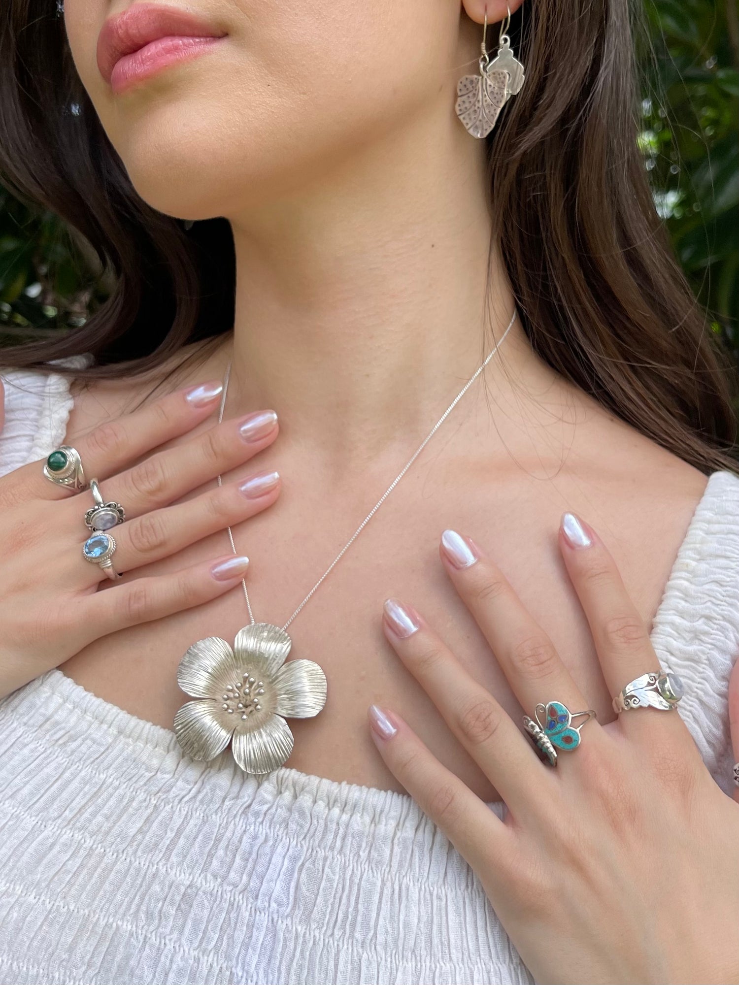 Explore 925 sterling silver jewellery made by Nepalese craftsmanship, reflecting generations of silversmithing tradition. Each piece is thoughtfully crafted using genuine crystals to bring timeless elegance and contemporary style to your collection.